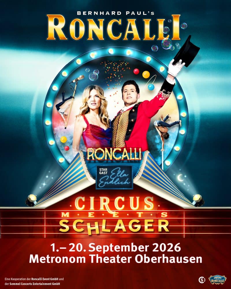 Mit der exklusiven Show „Circus meets Schlager“ ziehen wir ins Metronom Theater Oberhausen und verbinden Circuskunst mit der mitreißenden Welt des deutschen Schlagers. Als Stargast mit dabei: Ella Endlich!