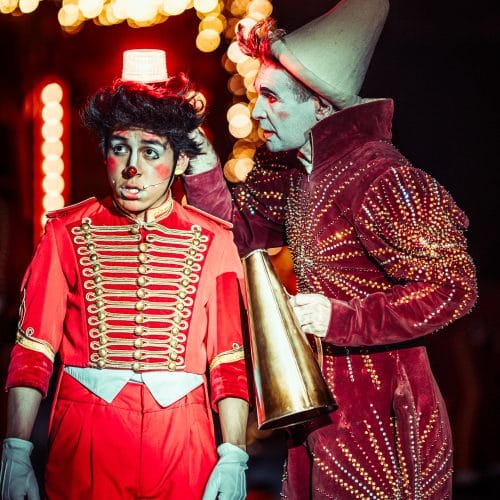 Kike Enrique Aguilera Ortega kommt aus Barcelona und ist Schauspieler, Musiker und Circuskünstler, der seine Kreativität in der ganzen Welt entfaltet. Er trat in verschiedensten Produktionen in Japan, Deutschland, Spanien, Kanada und Shanghai auf. In seinen humorvollen Zwischenspielen entfaltet er ein ganzes Kaleidoskop skuril-liebevoller Charaktere und Begebenheiten. So entstehen ganze komische Feuerwerke, die das Publikum schmunzeln aber auch herzlich lachen machen.