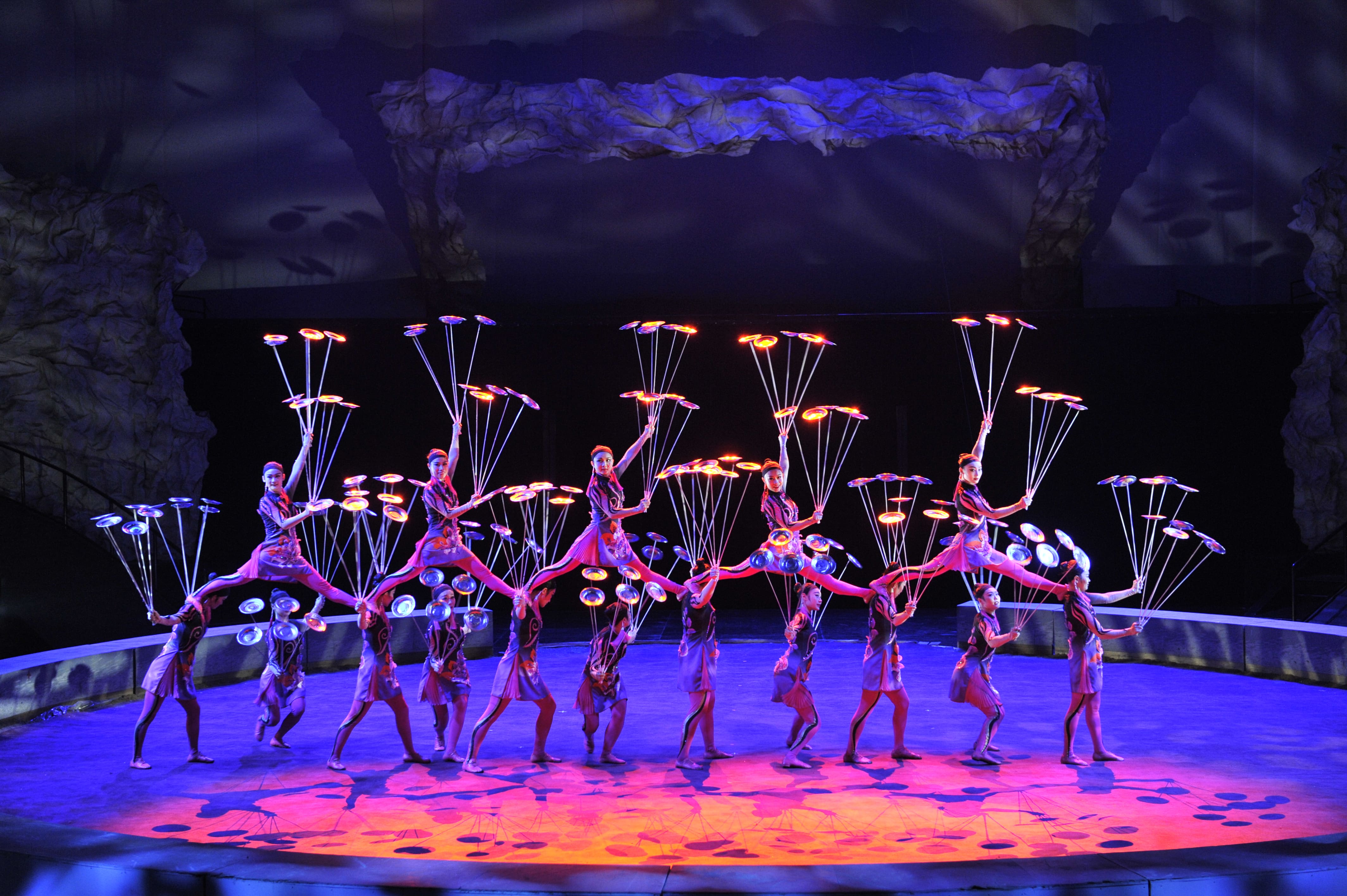 In anmutiger Harmonie wirbeln die dreizehn Artistinnen der Shandong Acrobatic Troupe glitzernde Gegenstände durch die Berliner Luft. Die jungen Chinesinnen wurden bereits mehrfach für ihr virtuoses Fussspitzengefühl ausgezeichnet. Mit Eleganz und Leichtigkeit zeichnen sie in kunstfertigen  Choreografien vergängliche Bilder in den dreidimensionalen Raum über der Manege.