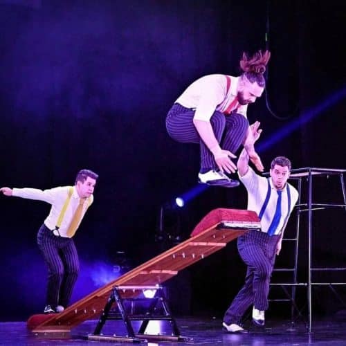 Dynamisch, wagemutig und unendlich unterhaltsam: sobald die dreiköpfige Akrobatikgruppe aus Ungarn die Manege stürmt, hält es vor Begeisterung im Publikum kaum mehr jemand auf seinem Sitz. Mit atemberaubenden Sprüngen, makelloser Präzision und einer unverwechselbaren Eleganz verleihen The Gents der zeitlosen Kunst der Akrobatik eine frische, energiegeladene Note. Ihre Darbietungen verbinden technische Raffinesse mit Stil und viel Humor und sorgen für ein entspanntes Lächeln, das noch lange anhält.