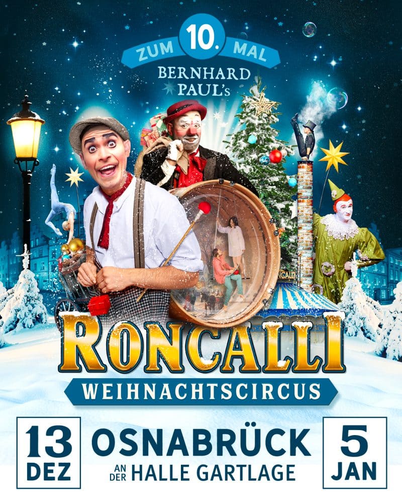 Wirbelnde Schneeflocken, Mandelduft und funkelnde Weihnachtslichter: Bereits zum zehnten Mal lädt Roncalli das Osnabrücker Publikum ein in seine einzigartige Weihnachtswunderwelt.